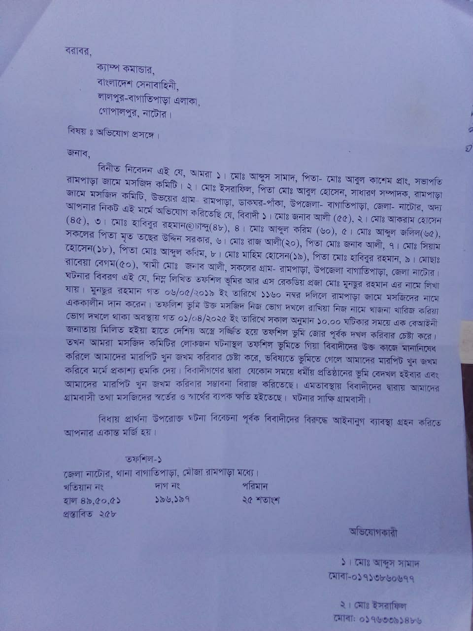 বাগাতীপাড়ায় আওয়ামী লীগ কর্মীর দখলে রামপাড়া জামে মসজিদের জমি! প্রশাসনের হস্তক্ষেপ দাবি স্থানীয়দের