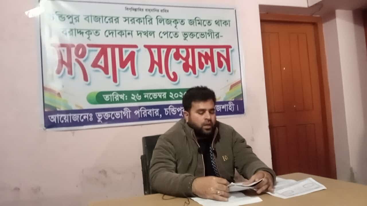 বাঘায় জোরপূর্বক দোকানঘর দখলের অভিযোগে সংবাদ সম্মেলন অনুষ্ঠিত