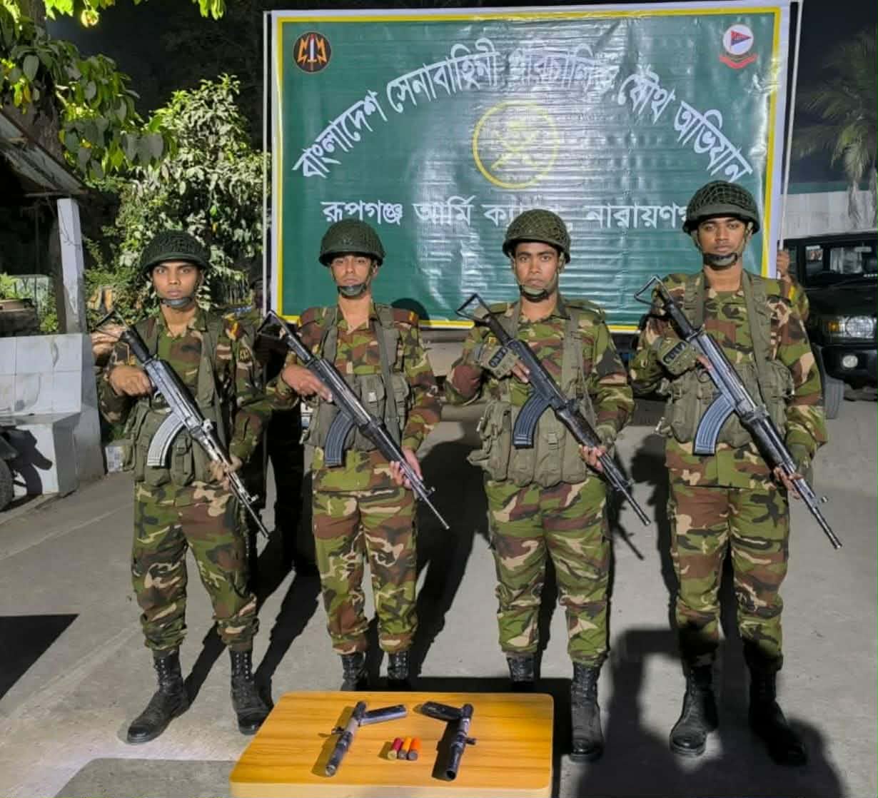 রূপগঞ্জ আর্মি ক্যাম্প ইনচার্জ জনান, দেশের সার্বিক আইন-শৃঙ্খলা পরিস্থিতি স্বাভাবিক রাখা এবং জনগণের জানমালের নিরাপত্তা নিশ্চিতকল্পে বাংলাদেশ সেনাবাহিনী এ ধরনের অভিযান নিয়মিতভাবে পরিচালনা করে আসছে এবং ভবিষ্যতেও এ কার্যক্রম অব্যাহত থাকবে বলে জানায় সেনাবাহিনী।###