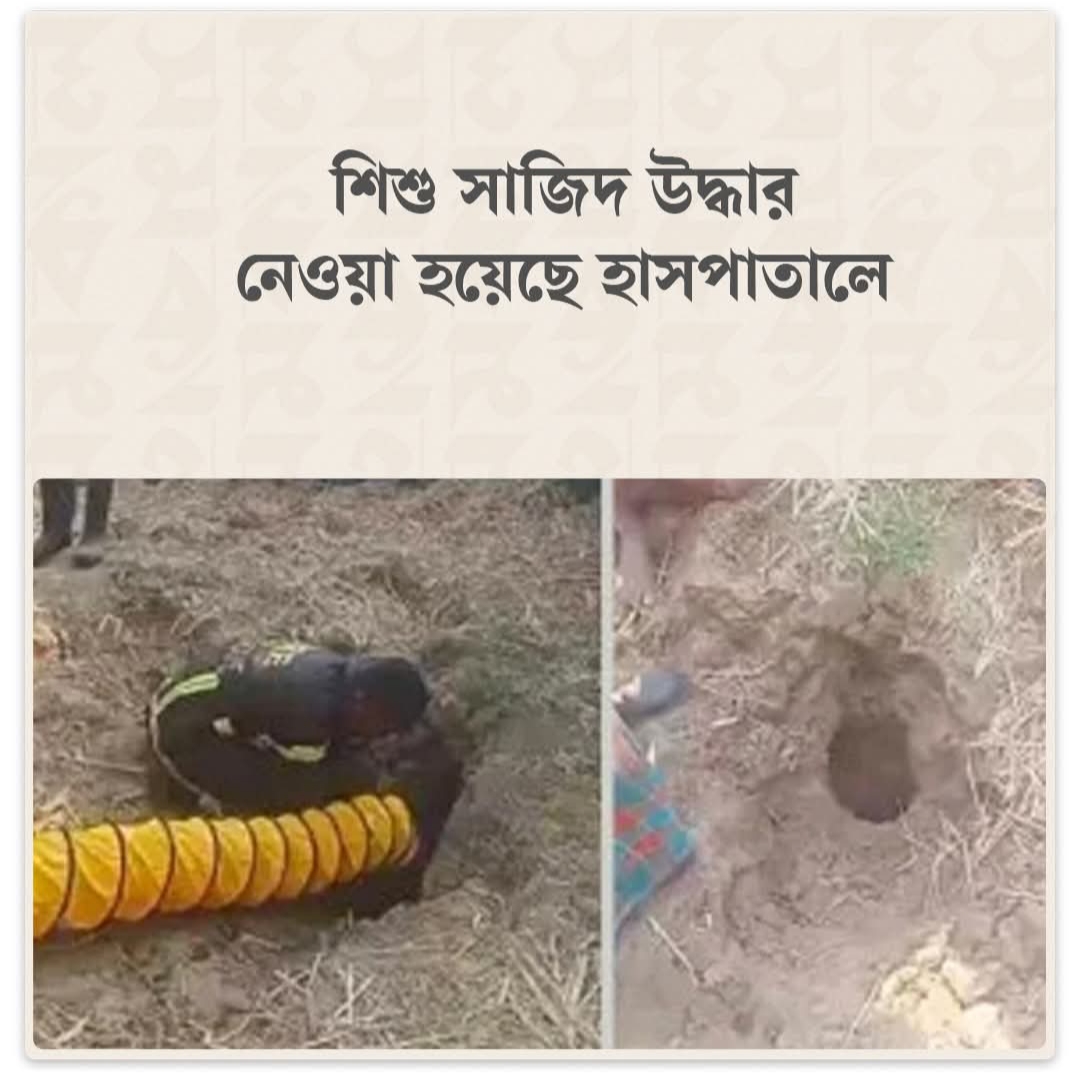 রাজশাহীর তানোরে পরিত্যক্ত কূপে পড়ে যাওয়া শিশু সাজিদকে উদ্ধার করা হয়েছে। বৃহস্পতিবার রাত ৯টা ৭ মিনিটে ফায়ার সার্ভিস সদস্যরা শিশুটিকে উদ্ধার করে। তাকে হাসপাতালে নেওয়া হয়েছে।