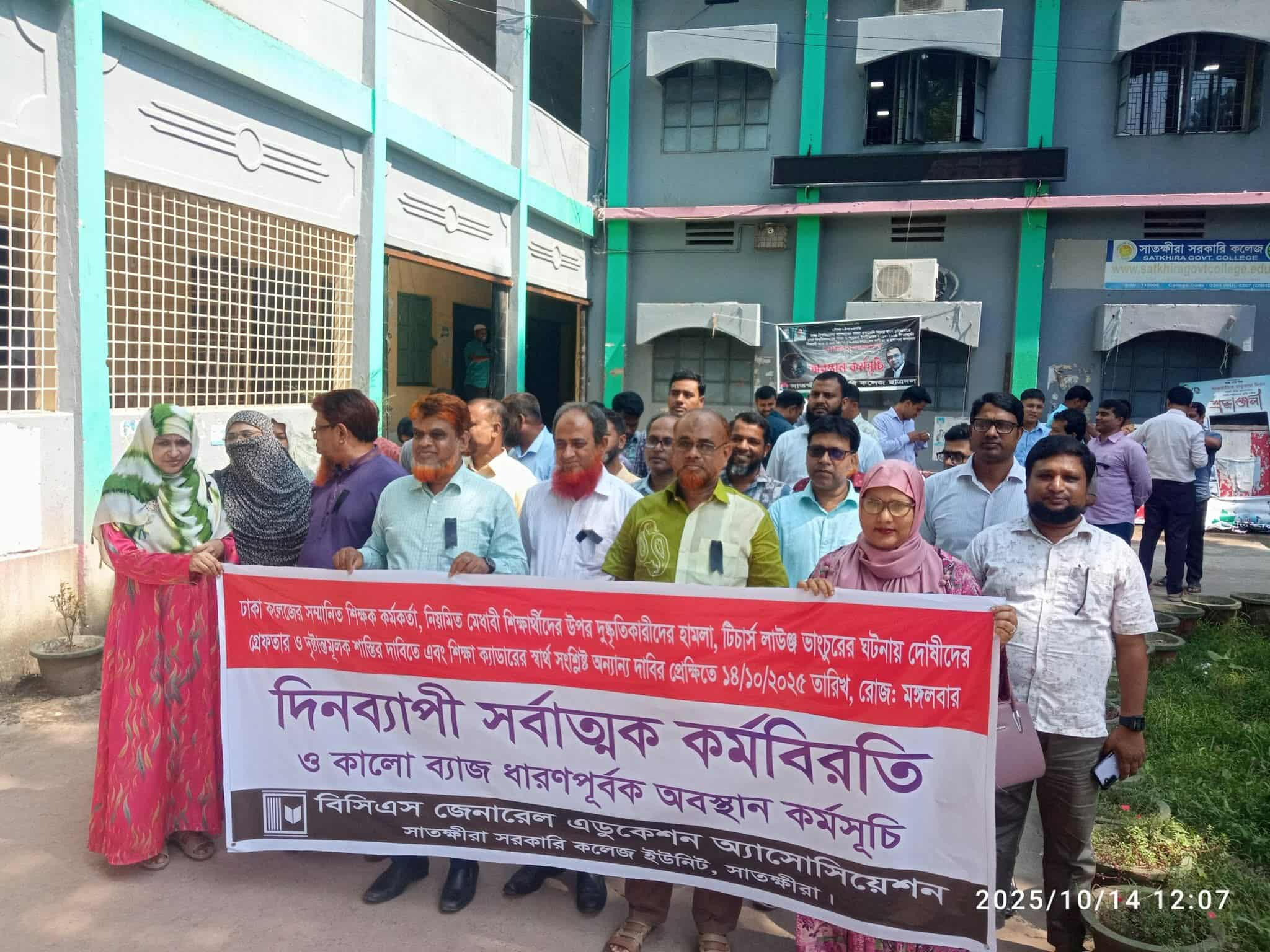 ঢাকা কলেজে শিক্ষক লাঞ্ছনার ঘটনাকে কেন্দ্র করে সারাদেশের ন্যায় বিসিএস জেনারেল এডুকেশন অ্যাসোসিয়েশন সাতক্ষীরা সরকারি কলেজ ইউনিটের উদ্যোগে সর্বাত্মক কর্মবিরতি ও কালো ব্যাজ ধারণপূর্বক অবস্থান কর্মসূচি পালিত হয়েছে।